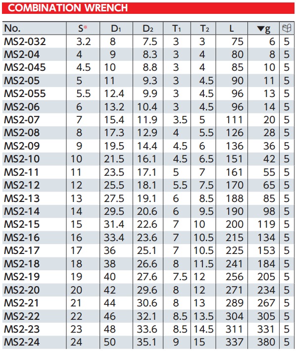 Các cỡ: MS2-07, 08, 10, 12, 13, 14, 17, 19