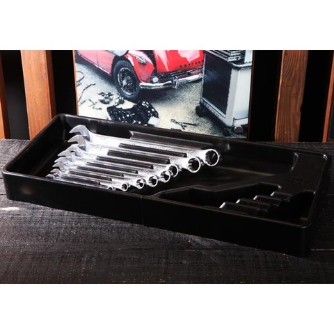 Bộ cờ lê KTC Nhật TMS208 gồm 8 cỡ được bố trí trong khay nhựa. |
