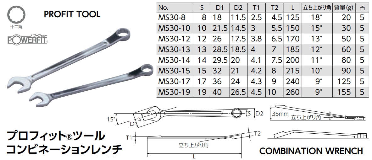 Cờ lê và tròng KTC loại Profit có các lựa chọn từ 8-19mm |
