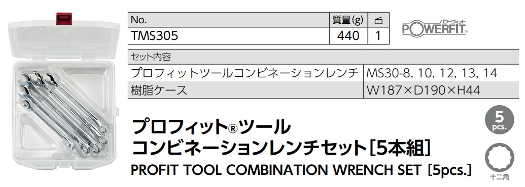 Mã số: TMS305, gồm 5 chiếc với các cỡ 8, 10, 12, 13, 14mm