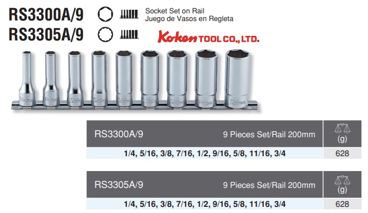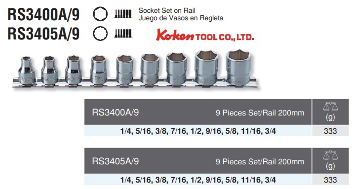 Hình ảnh bộ đầu khẩu 3/8 inch loại 6 cạnh RS3400A/9 (loại 12 cạnh RS3405A/9):