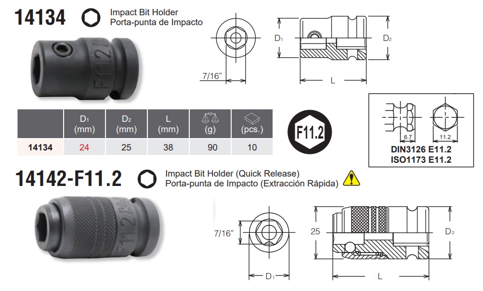 Các cỡ đầu lục giác từ 4mm đến 19mm, sử dụng với súng vặn ốc 1/2