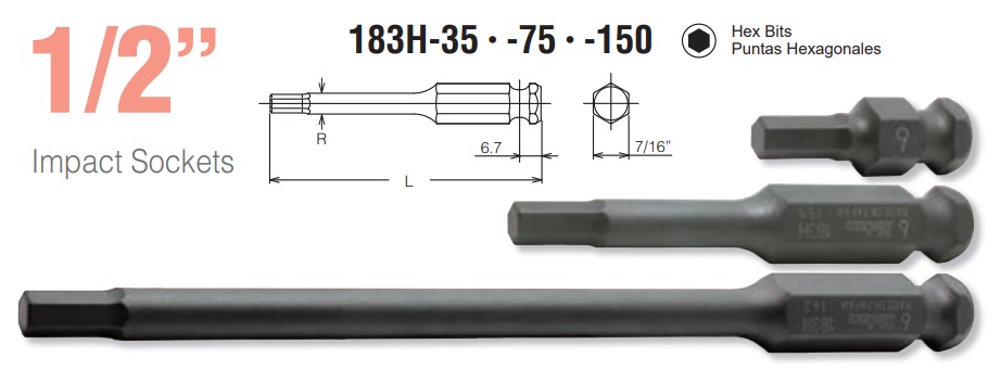 Mũi vặn vít lục giác dòng 183H có các lựa chọn chiều dài 35mm, 75mm và 150mm |