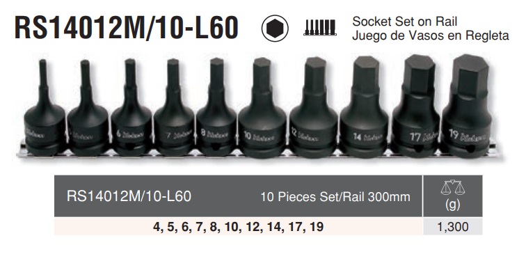 Bộ đầu khẩu lục giác: RS14012M/10-L60 có thanh giữ khẩu 10 đầu đi kèm |