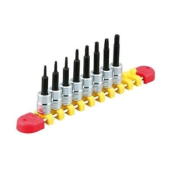 Bộ khẩu dài lục giác bông KTC với 8 cỡ từ T8H đến T30H, có chiều dài đều nhau bằng 121.5mm |