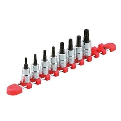Bộ khẩu với đầu lục giác bông có lỗ với đầu khẩu loại 3/8 inch gồm 8 cỡ từ T20H đến T55H. |