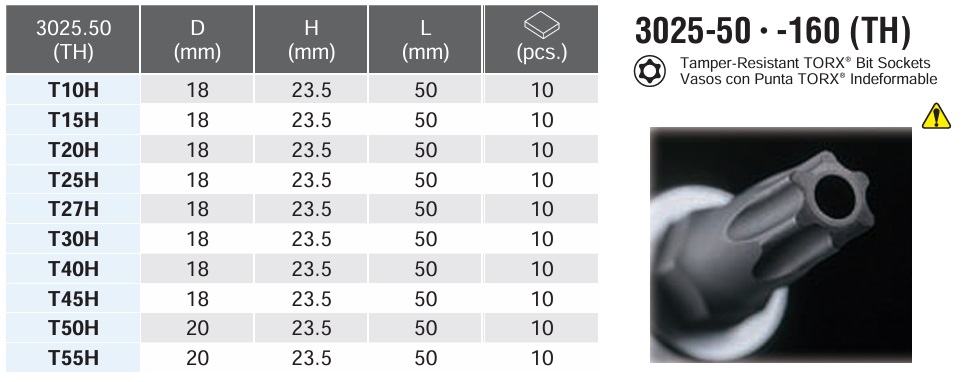 Chiều dài khẩu tuýp hoa thị: 50mm, với mũi hoa thị: từ T10 đến T45