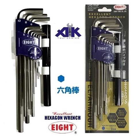 Bộ lục giác EIGHT sản xuất tại Nhật, với đầu vặn là đầu thẳng, cùng với tay công. |