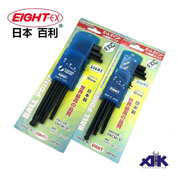 Những bộ sản phẩm với mã số TL, TEL, TLC, TM, T, TLC, .. là các bộ lục giác với đầu dài là đầu bi thiết kế kiểu Tapper Head. Những bộ sản phẩm lục giác đầu bi của Eight chiếm tỷ trọng bán hàng lớn của Eight.
