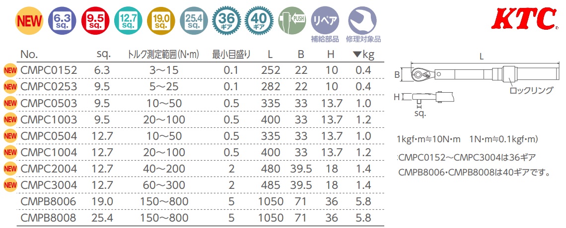 Cờ lê lực KTC dòng CMPC thay thế cho dòng CMPB từ CMPB0152 đến CMPB3004 |
