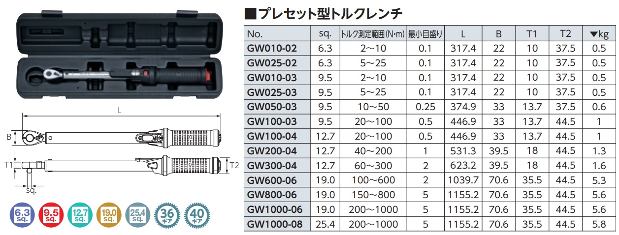 Với dải lực từ 10-50Nm với đầu nối: 1/2 inch