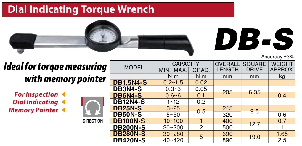 Có thể tham khảo thêm cờ lê lực kiểu kim chỉ với mặt đồng hồ DB-S: