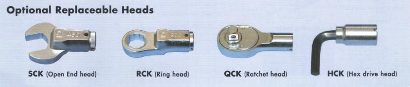 Đầu vặn ốc (đầu ra) có thể dùng các đầu rời kiểu: cờ lê mở, đầu tròng, đầu lục giác chìm, đầu kết nối khẩu, đầu mỏ lết, ... đây là các lựa chọn cơ bản và là các loại chính được cân nhắc khi dùng với cờ lê lực kiểu thay đầu.