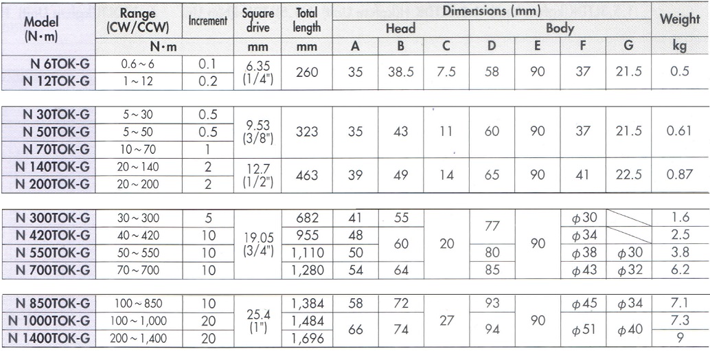 Mã số: N300TOK-G (đon vị đo là N.m)