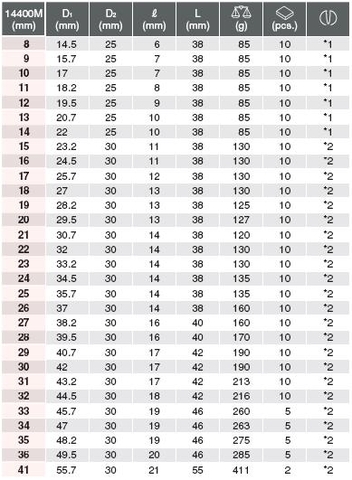 Các cỡ có thể lựa chọn từ 8 đến 41mm