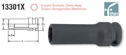 Đối với chiều dài 50mm, tham khảo đầu khẩu Koken 3/8 loại 13301X:
