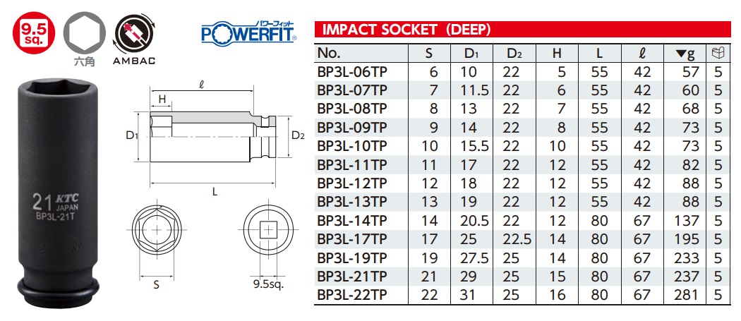 Với đầu khẩu dài, tham khảo thông số hình ảnh của đầu khẩu vặn ốc KTC BP3L: