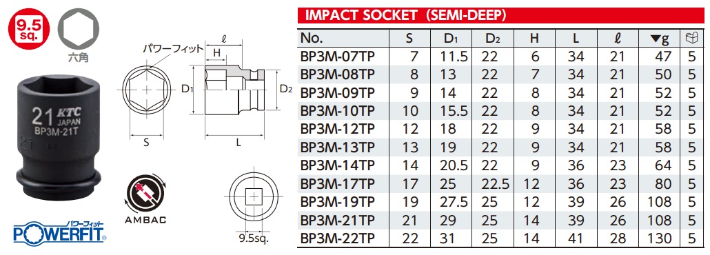 Thông số, hình ảnh đầu khẩu vặn ốc KTC BP3M-08T: