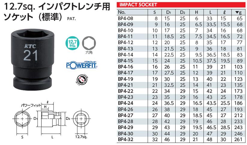 Thông số hình ảnh đầu khẩu vặn ốc 1/2 inch KTC loại dài dòng BP4L: