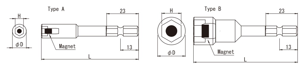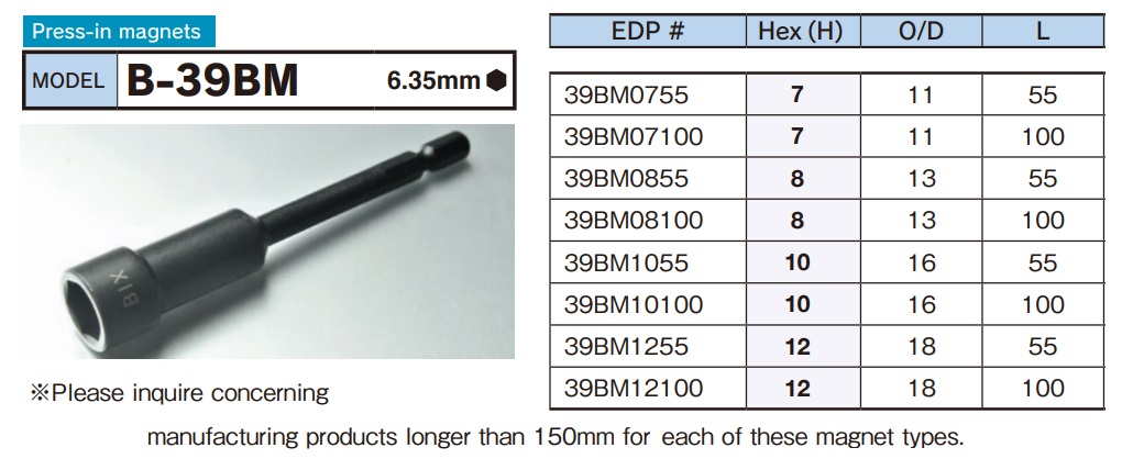 Tham khảo đầu bits loại có từ tính B-39BM: