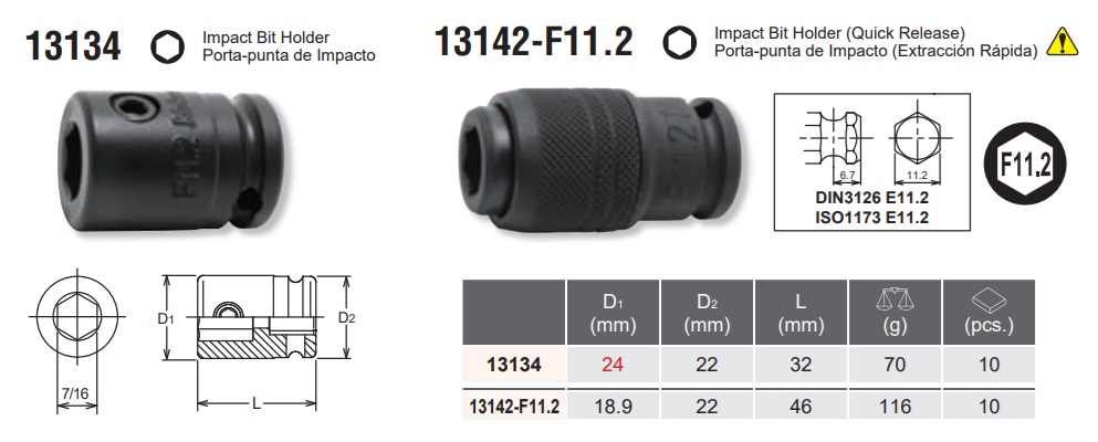Các cỡ đầu lục giác 13012M được dùng với súng 3/8 inch, với các cỡ từ 3-14mm |