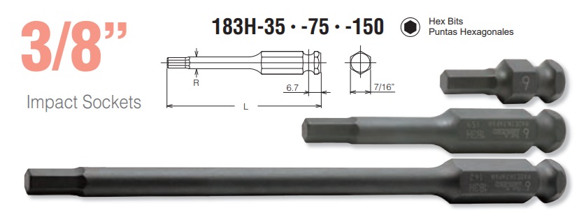 Với nhu cầu chiều dài đầu lục giác lớn hơn, tham khảo dòng 183H cỡ 75, 150: