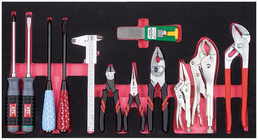 Khay 3 là các tô vít cỡ lớn, cùng đầy đủ các loại kìm dùng trong sửa chữa. |