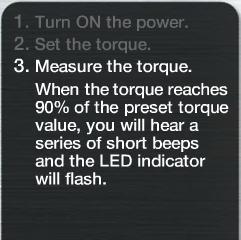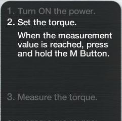 3 bước để thao tác để xiết lực đến mục tiêu cài đặt trước . Khởi động cần xiết lực . Thiết lập lực lực đặt trước . Tiến hành đo lực xiết |