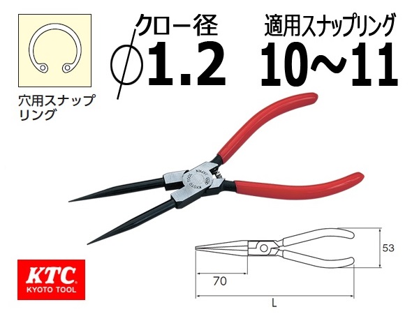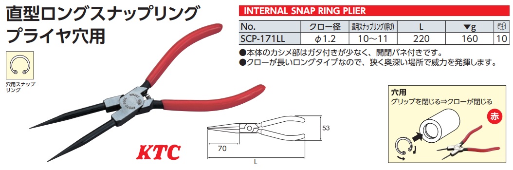 Thông số, hình ảnh kìm mở phanh trong mỏ dài KTC SCP-171LL với mũi 1.2mm: