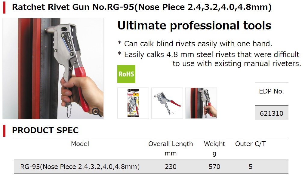 Sản phẩm dùng với các cỡ đinh tán: 2.4, 3.2, 4.0, 4.8mm