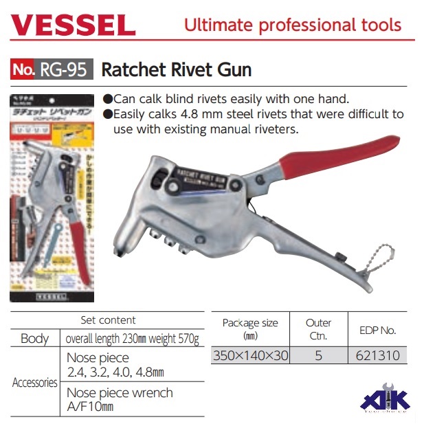 Thông số, hình ảnh kìm rút đinh tán Vessel RG-95: