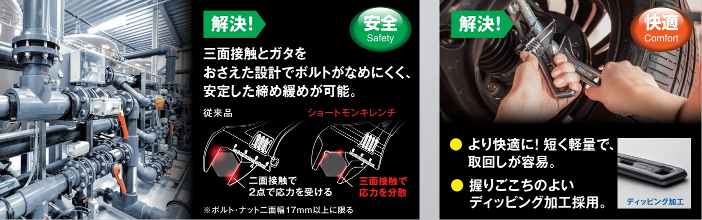 Phần đầu mỏ lết dòng WMS được tiếp xúc 3 mặt với bu lông (đai ốc) |