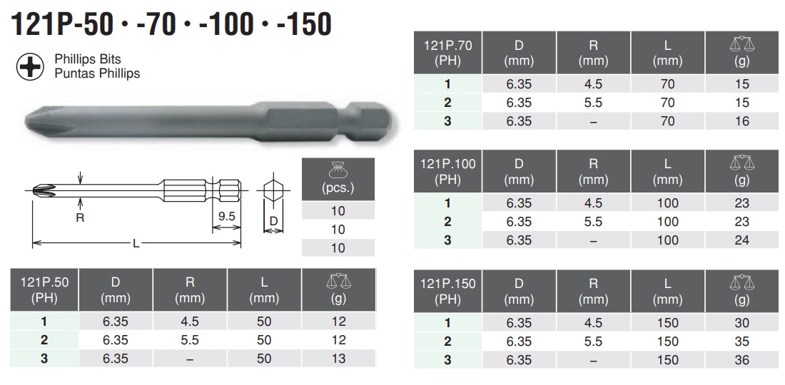 Chiều dài: 50, 70, 100 và 150mm, mũi 1, 2, 3
