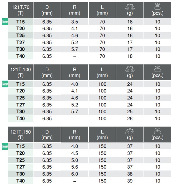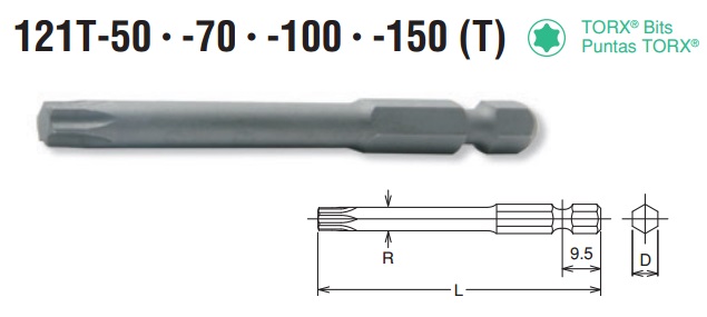 Thông số, hình ảnh đầu mũi vặn vít đầu sao dòng 121T của Koken: