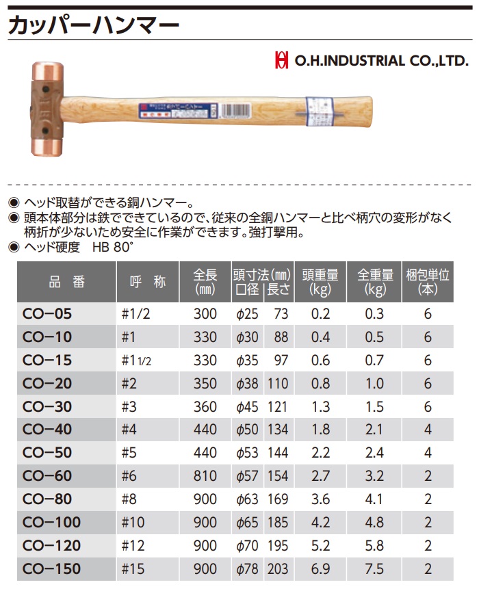 Hình ảnh chi tiết loại búa đồng OH Nhật dòng CO: