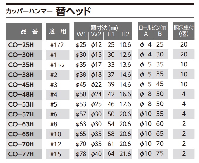 Búa đồng CO với cỡ lớn nhất: CO-150 (7.5kg) |