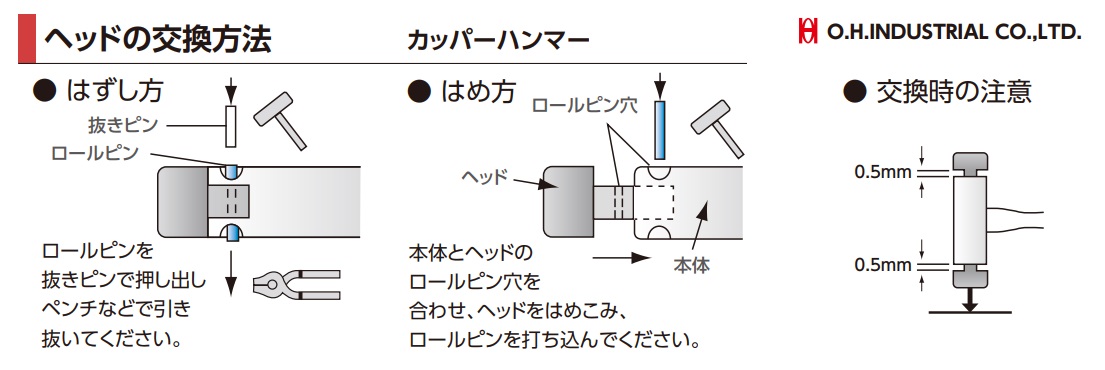 Khi thay đầu búa, dùng búa với chốt pin có sẵn, đóng rời chốt định vị và dùng kìm rút ra ngoài. |