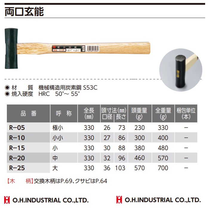 Hình ảnh chi tiết loại búa sắt đầu lục giác OH dòng R: