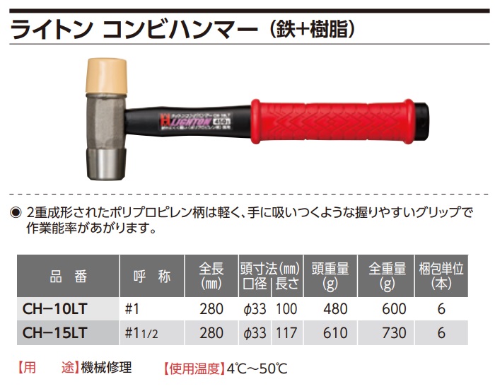 Mã số dòng sản phẩm: CH (búa 1 đầu sắt, 1 đầu nhựa)