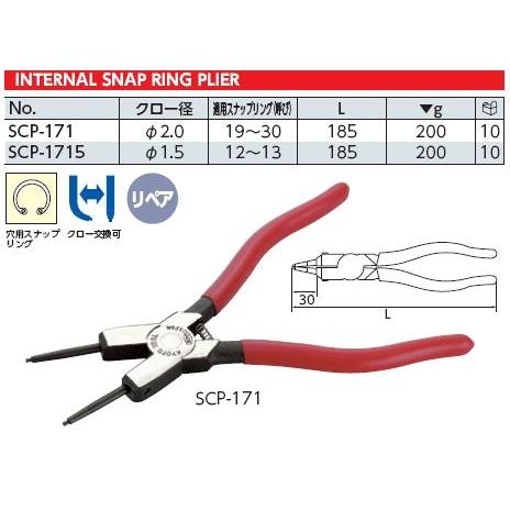 Thông số hình ảnh kìm phanh trong (hay kìm phe trong) KTC SCP-171: