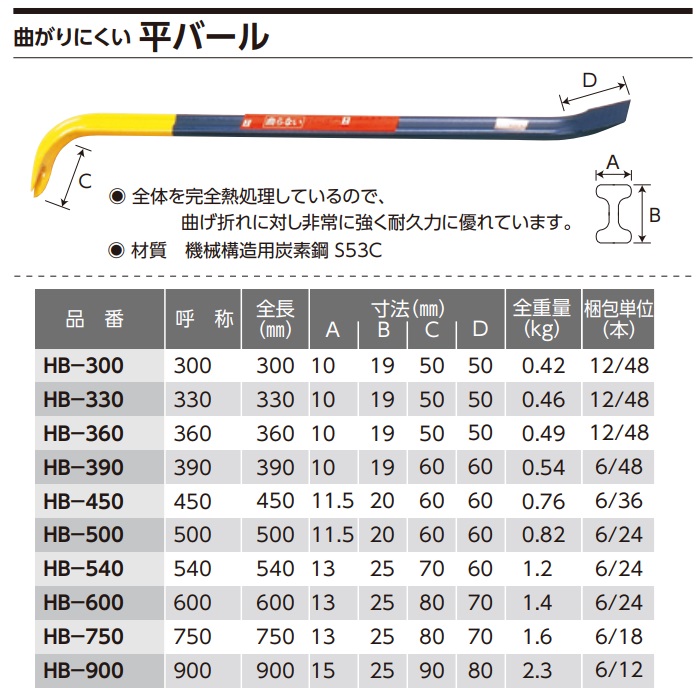 Dòng thanh nạy HB có các lựa chọn 300-900mm |