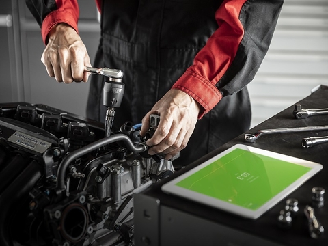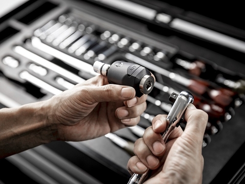 Thiết bị được nối với dụng cụ vặn ốc như tay lắc, hay tay xiết lực mạnh, ..