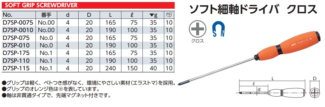 Thông số chi tiết về sản phẩm tô vít 4 cạnh KTC dòng D7SP: