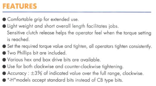 Dải lực: 5-60cNm, đầu bits: 6.35mm