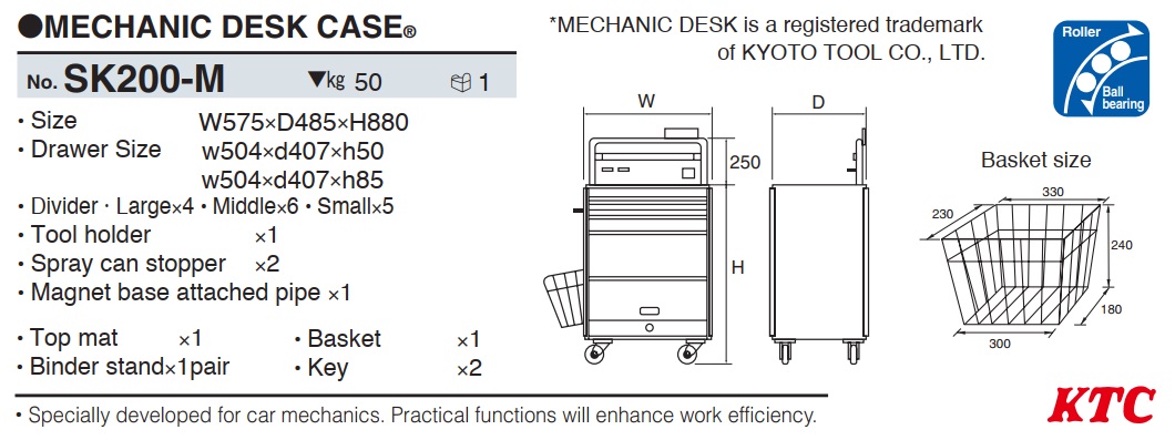 Thông số kích thước xe dụng cụ KTC SK200-M: