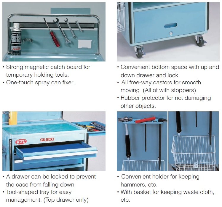 Xe dụng cụ KTC SK200-M nếu đi kèm với dụng cụ, tham khảo Bộ dụng cụ SK201 |